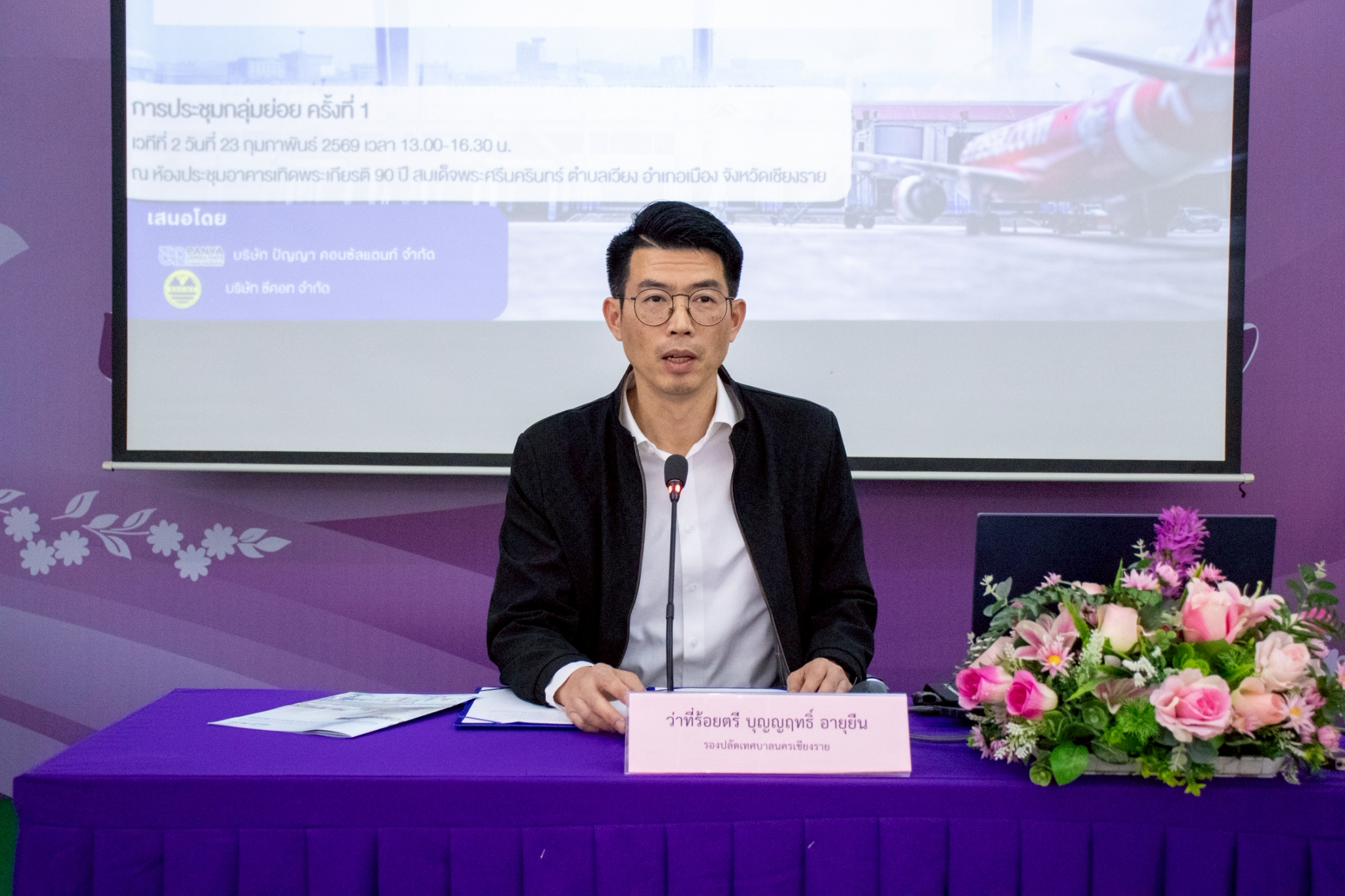 เมื่อวันจันทร์ที่ 23 กุมภาพันธ์ พ.ศ. 2569 เวลา 13.00 – 16.30 น. บริษัท ท่าอากาศยานไทย จำกัด (มหาชน) หรือ ทอท. และ ท่าอากาศยานแม่ฟ้าหลวง เชียงราย (ทชร.) ร่วมกับ บริษัท ปัญญา คอนซัลแตนท์ จำกัด และบริษัท ซีคอท จำกัด จัดการประชุมกลุ่มย่อย ครั้งที่ 1 เวทีที่ 2 การศึกษาและจัดทำรายงานการเปลี่ยนแปลงรายละเอียดโครงการในรายงานการประเมินผลกระทบสิ่งแวดล้อม โครงการท่าอากาศยานแม่ฟ้าหลวง เชียงราย : โครงการพัฒนาท่าอากาศยานแม่ฟ้าหลวง เชียงราย โดยได้รับเกียรติจาก นายบุญญฤทธิ์ อายุยืน รองปลัดเทศบาลนครเชียงราย กล่าวต้อนรับและเปิดการประชุมกลุ่มย่อย ครั้งที่ 1 เวทีที่ 2