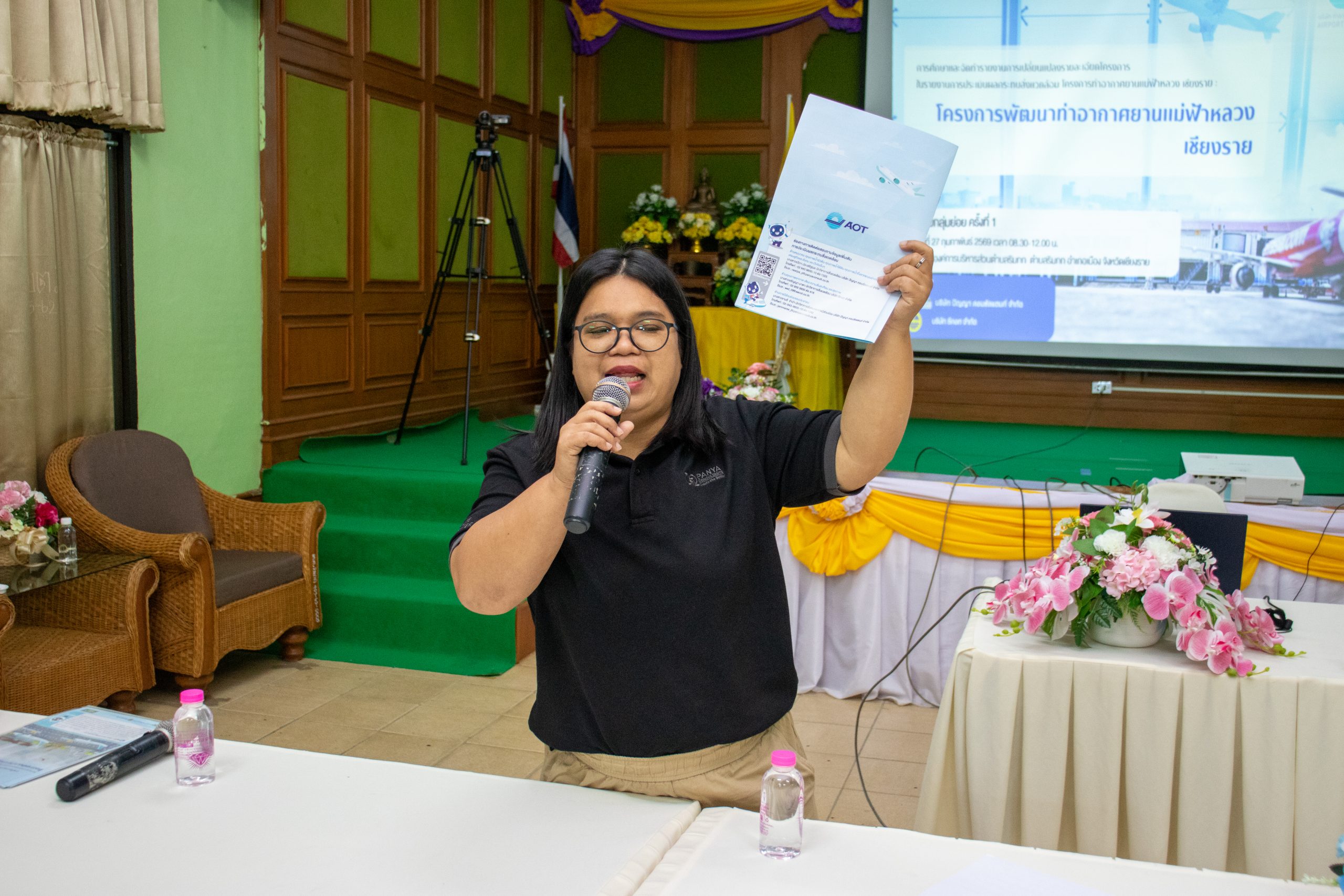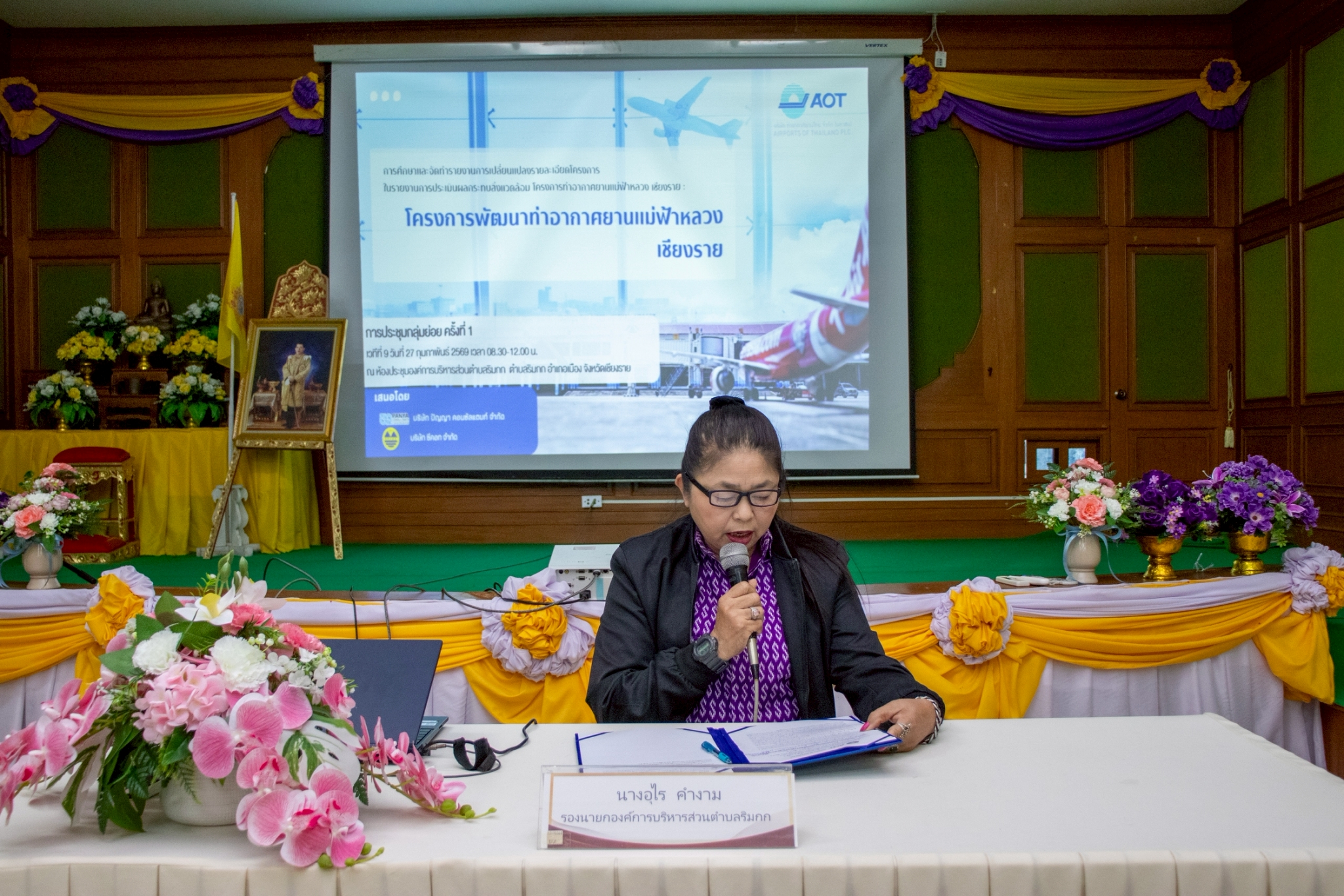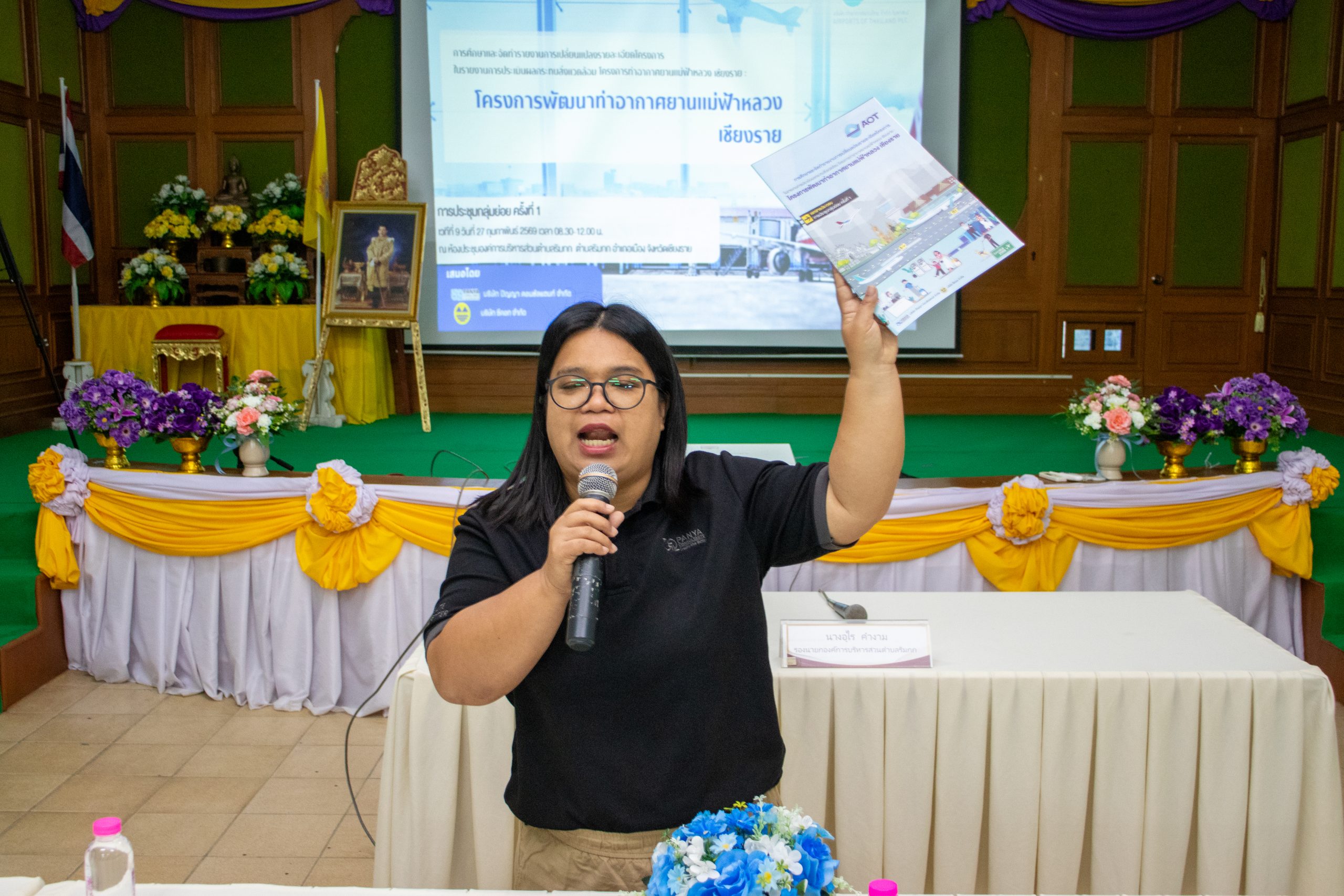 เมื่อวันศุกร์ที่ 27 กุมภาพันธ์ พ.ศ. 2569 เวลา 08.30 – 12.00 น. ณ ห้องประชุมองค์การบริหารส่วนตำบลริมกก อำเภอเมือง จังหวัดเชียงราย บริษัท ท่าอากาศยานไทย จำกัด (มหาชน) หรือ ทอท. และ ท่าอากาศยานแม่ฟ้าหลวง เชียงราย (ทชร.) ร่วมกับ บริษัท ปัญญา คอนซัลแตนท์ จำกัด และบริษัท ซีคอท จำกัด จัดการประชุมกลุ่มย่อย ครั้งที่ 1 เวทีที่ 9 การศึกษาและจัดทำรายงานการเปลี่ยนแปลงรายละเอียดโครงการในรายงานการประเมินผลกระทบสิ่งแวดล้อม โครงการท่าอากาศยานแม่ฟ้าหลวง เชียงราย : โครงการพัฒนาท่าอากาศยานแม่ฟ้าหลวง เชียงราย โดยได้รับเกียรติจาก นางอุไร คำงาม รองนายกองค์การบริหารส่วนตำบลริมกก กล่าวต้อนรับและเปิดการประชุมกลุ่มย่อย ครั้งที่ 1 เวทีที่ 9